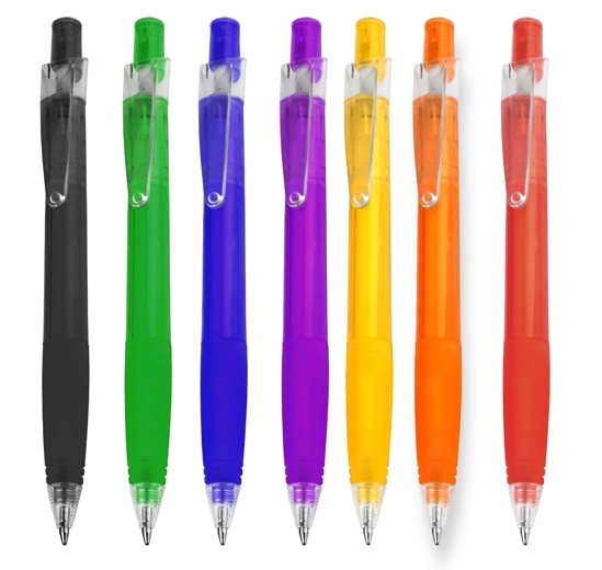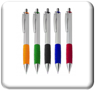 | | Caneta esferografica retratil em abs branco com grip em borracha macia, escrita azul |
