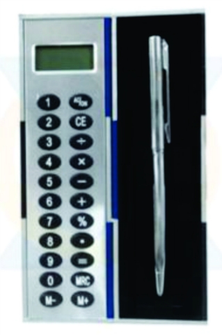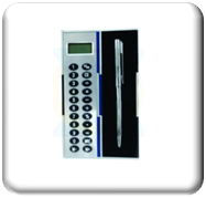 | | Calculadora com bloco de anotações removível e caneta.Capinha de couro sintético. |