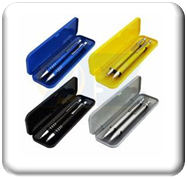 | Conjunto de caneta e lapiseira em estojo de papelão resistente. |