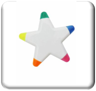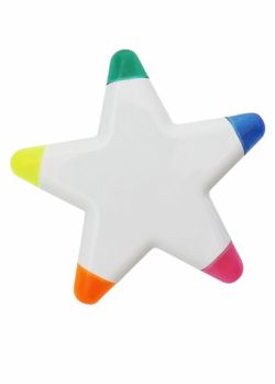 | | Marca Texto em formato de Estrela com 5 cores, material de plástico. |