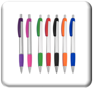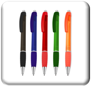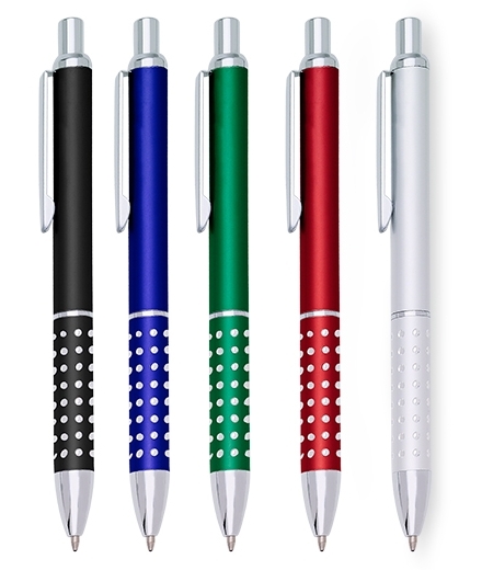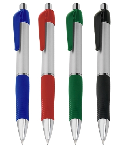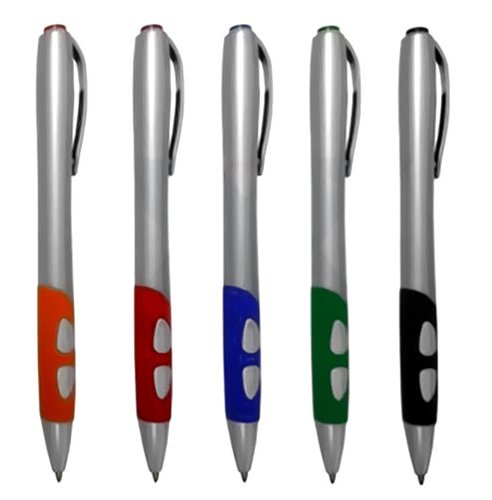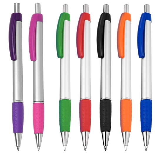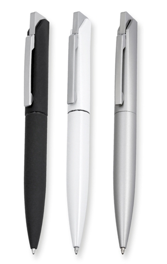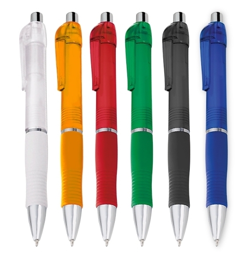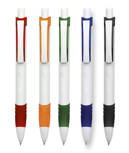 | | Caneta esferografica retratil em abs branco com grip em borracha macia, escrita azul |