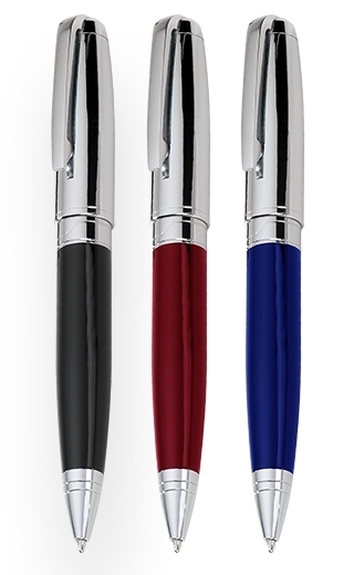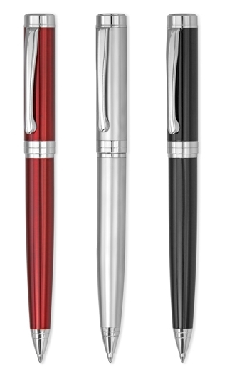 | | Caneta twist, esferográfica, de metal. Escrita azul. |
