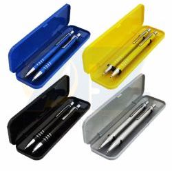 | Caneta e Lapiseira semi-metal + estojo de plástico, cores disponíve |