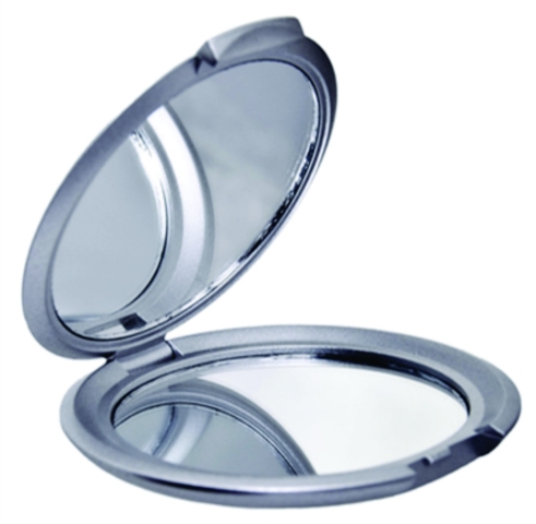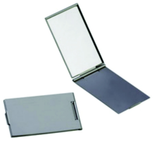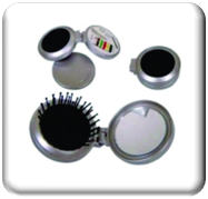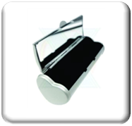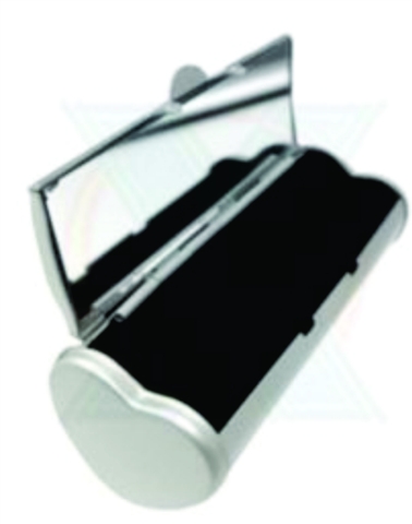 | | Porta batom de alumínio com espelho, detalhes no formato de coração. |