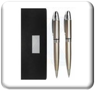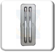 | Conjunto de caneta e lapiseira em estojo de papelão resistente. |